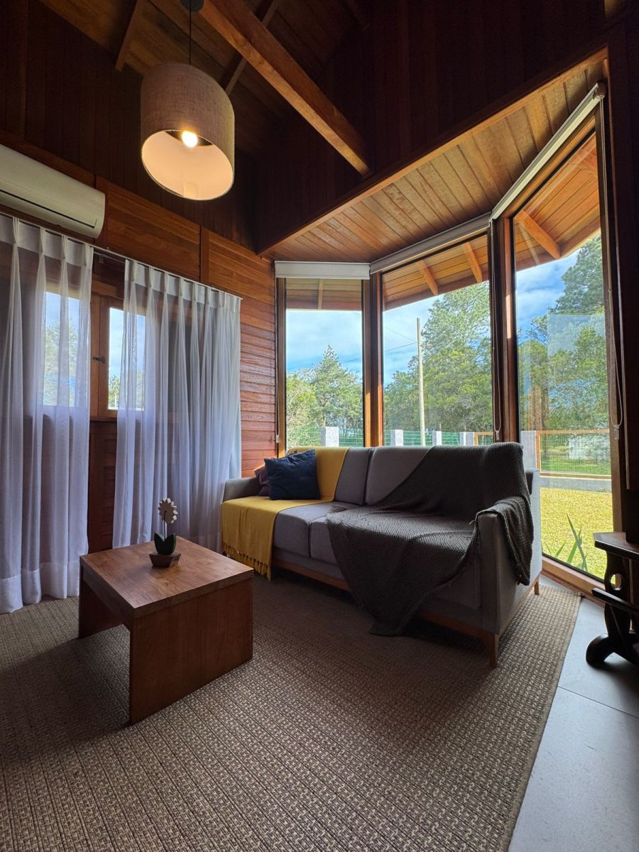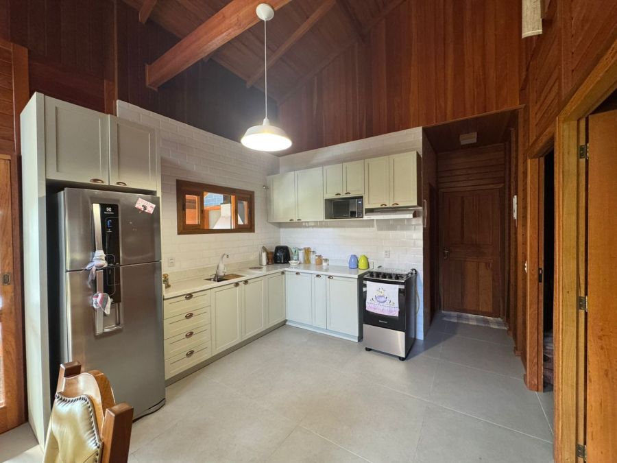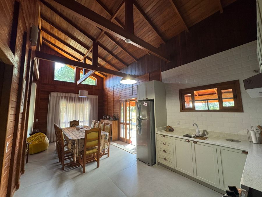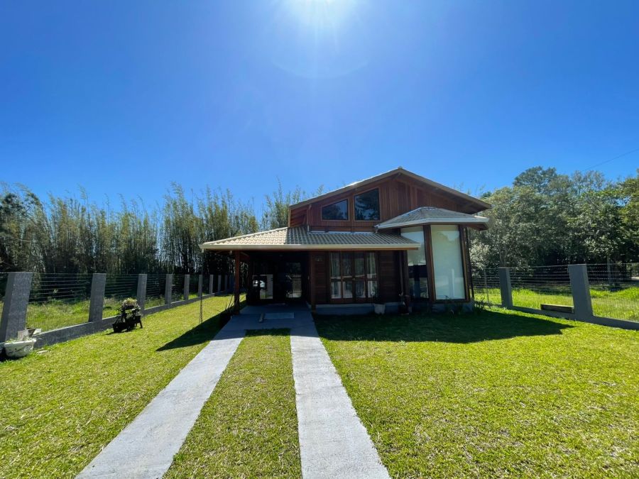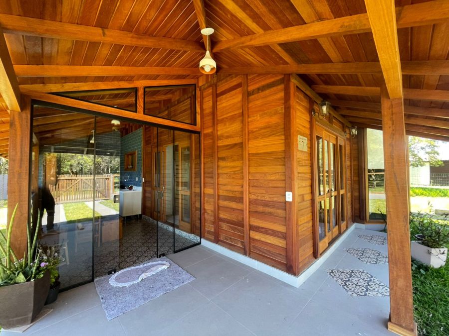 Linda casa em madeira de lei com pé-direito alto, cercada e com portão de correr no mesmo material. Um imóvel aconchegante, bem planejado e pronto para morar!