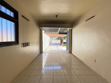 Garagem com churrasqueira, lavanderia, banheiro auxiliar e pergolado para veículos