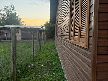 Casa de madeira duplada, construída com eucalipto tratado na parte externa e pinus tratado na parte interna, garantindo durabilidade, conforto térmico e ótimo estado de conservação.