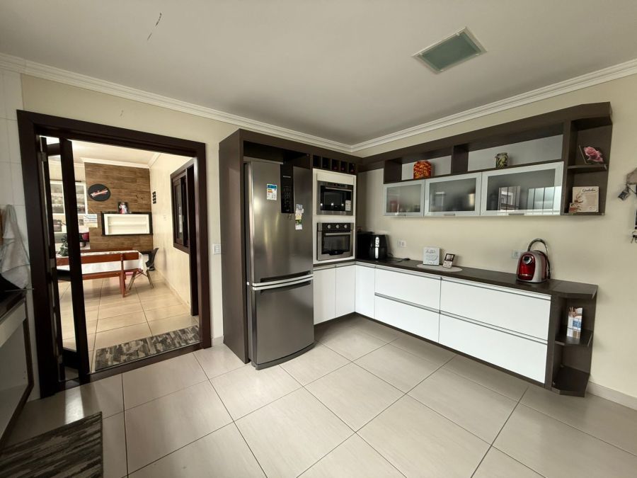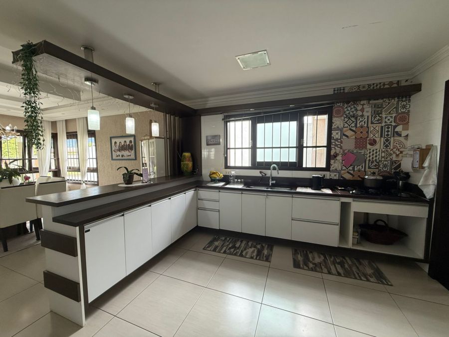 • Cozinha planejada integrada ao espaço gourmet com churrasqueira