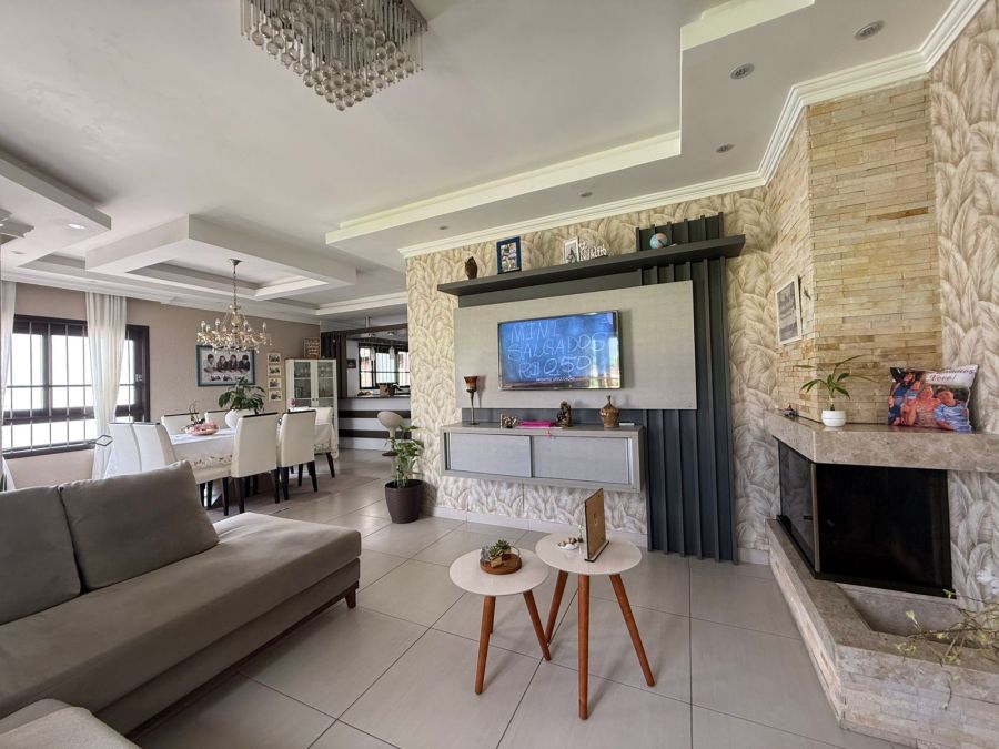 • Sala ampla com lareira, iluminação em LED e acabamentos em gesso