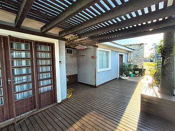 - Deck e pergolado com piscina.